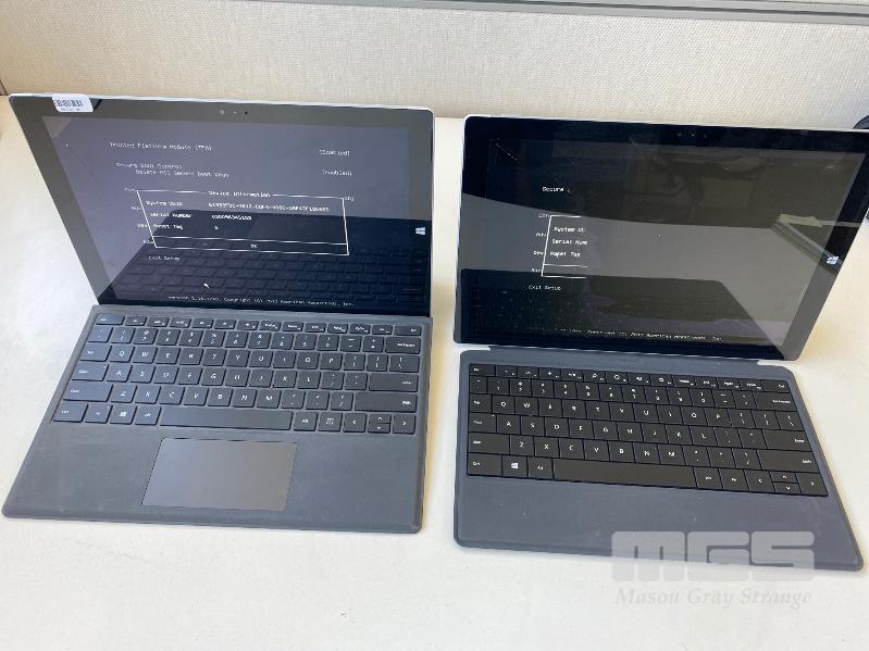 2 x TABLET PCS, MICROSOFT SURFACE PRO 3, MODEL 1631, KEYBOARD TYPE COVERS (NO POWER SUPPLIES) (NOTE: DAMAGED SCREENS) S/N:030096345153, 008216451853