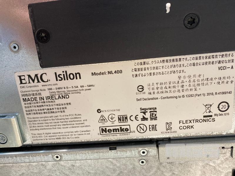 RACKMOUNT STORAGE PLATFORM, EMC ISILON NL400, 36-BAY (24-FRONT, 12-BACK), 2 x XEON E5603 @ 1.6GHz, 24GB RAM, 35 x 2TB SATA HDD, 2 x PSU (NO CABLES) S/N:SN400-251549-0078