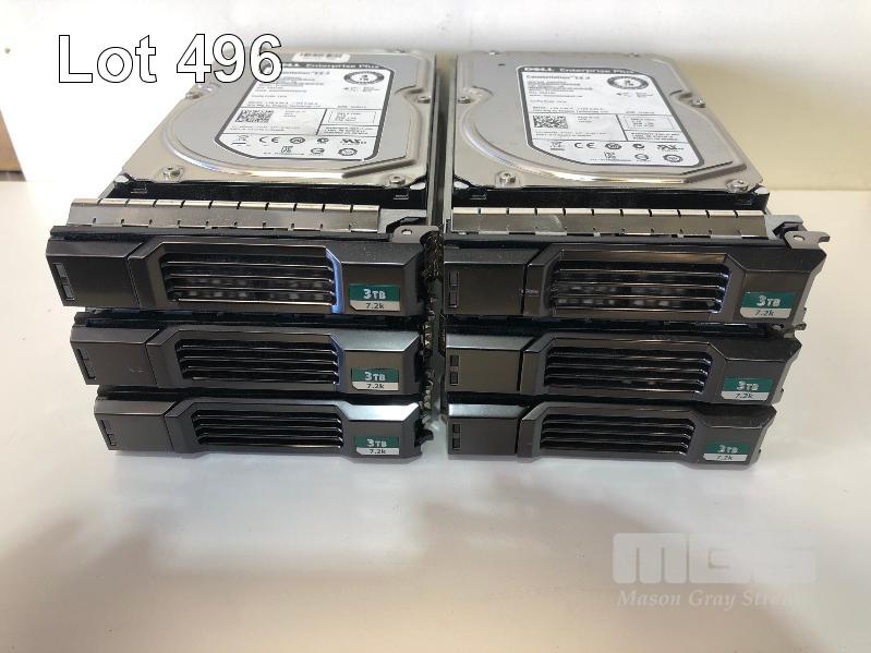 6 x DELL 3TB SAS HARD DRIVES, 3.5" WITH CADDIES
