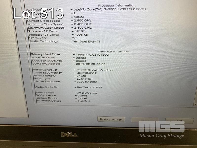 LAPTOP, DELL LATITUDE E7270, CORE i7 6600U (6TH GEN) @ 2.6GHz, 8GB DDR4 RAM, 256GB SSD, 12.5" WIDESCREEN (1920x1080), INTEL SKYLAKE GRAPHICS, Wi-Fi, BLUETOOTH, WINDOWS 10 HOME INSTALLED & POWER SUPPLY S/N:500QMC2