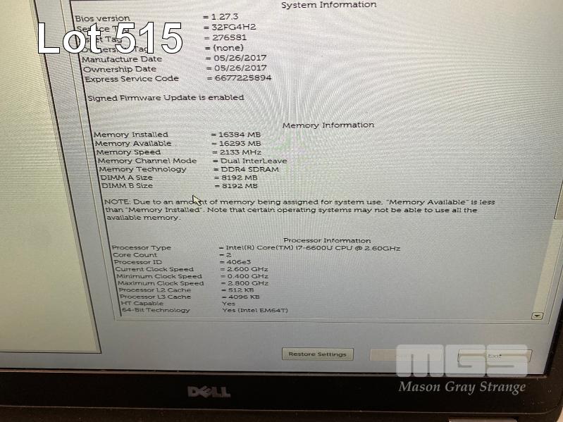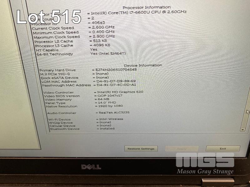 LAPTOP, DELL LATITUDE E7470, CORE i7 6600U (6TH GEN) @ 2.6GHz, 16GB DDR4 RAM, 512GB SSD, 14" WIDESCREEN (1920x1080), INTEL HD VIDEO, Wi-Fi, BLUETOOTH, WINDOWS 10 HOME INSTALLED, DOCKING STATION & POWER SUPPLY (NOTE: NO BATTERY, SCRATCH ON SCREEN) S/N:32FG4H2