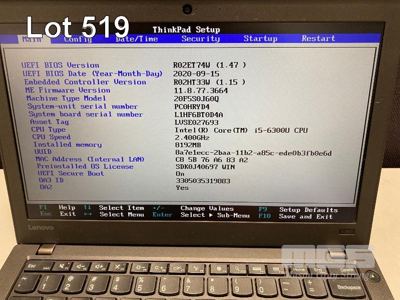 LAPTOP, LENOVO THINKPAD X260 (20F5S0J60Q), CORE i5 6300U (6TH GEN) @ 2.4GHz, 8GB DDR4 RAM, 525GB SSD, 12.5" WIDESCREEN (1366x768), INTEL HD VIDEO, Wi-Fi, BLUETOOTH, WINDOWS 10 PRO INSTALLED & POWER SUPPLY S/N:PC0HRYD4