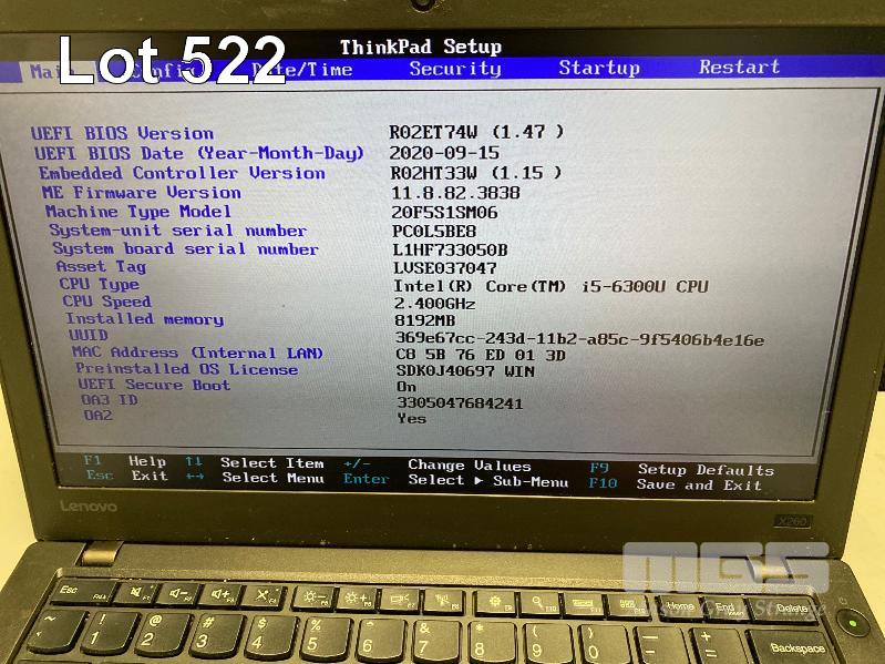 LAPTOP, LENOVO THINKPAD X260 (20F5S1SM06), CORE i5 6300U (6TH GEN) @ 2.4GHz, 8GB DDR4 RAM, 256GB SSD, 12.5" WIDESCREEN (1366x768), INTEL HD VIDEO, Wi-Fi, BLUETOOTH, WINDOWS 10 PRO INSTALLED & POWER SUPPLY (NOTE: MARKS ON SCREEN) S/N:PC0L5BE8