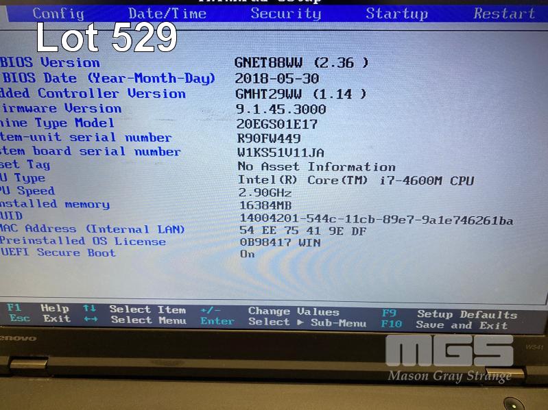 LAPTOP, LENOVO THINKPAD W541 (20EGS01E17), CORE i7 4600M (4TH GEN) @ 2.9GHz, 16GB DDR3 RAM, 256GB SSD, DVD-RW, 15.6" WIDESCREEN (1920x1080), INTEL HD VIDEO, 2GB NVIDIA QUADRO K1100M VIDEO, Wi-Fi, BLUETOOTH, WINDOWS 10 PRO INSTALLED & POWER SUPPLY (NOTE: MARKS ON SCREEN) S/N:R90FW449