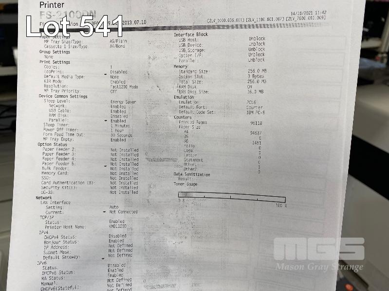 PRINTER, KYOCERA ECOSYS FS-2100DN LASER, USB, NETWORK, 96,118 PAGES (TEST PAGE ATTACHED - POOR QUALITY)