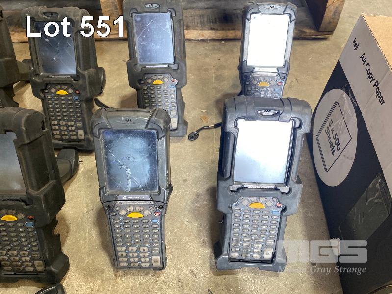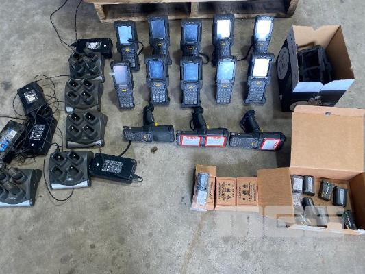 13 x MOTOROLA MC9190 MOBILE HANDHELD COMPUTERS (NOTE: ALL VARIOUS DAMAGE / FAULTS) WITH SPARE BATTERIES, PROTECTIVE RUBBER, 5 x 4-SLOT BATTERY CHARGERS WITH POWER SUPPLIES