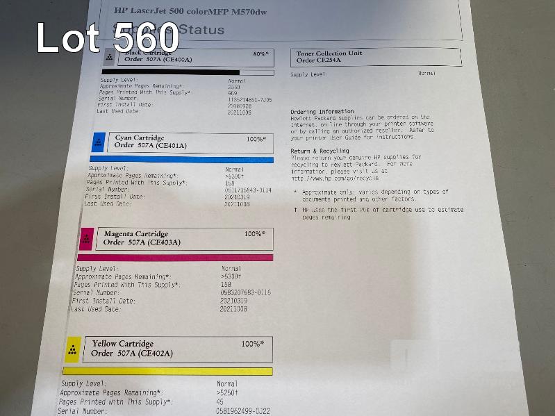 PRINTER, HP LASERJET 500 COLOUR MFP M570dw, USB, NETWORK, FAX, 1,300 COLOUR & 728 B&W PAGES (TEST PAGE ATTACHED) S/N:CN59DCJ40G