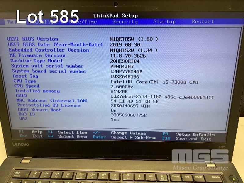 LAPTOP, LENOVO THINKPAD T470 (20HES0ET04), CORE i5 7300U (7TH GEN) @ 2.6GHz, 8GB DDR4 RAM, 256GB NVMe M.2 SSD, 14" WIDESCREEN (1366x768), INTEL HD VIDEO, Wi-Fi, BLUETOOTH, WINDOWS 10 PRO INSTALLED & POWER SUPPLY (NOTE: DAMAGE TO CASING FRONT LHS, MISSING ARROW KEY, MARKS ON SCREEN) S/N:PF0U4JH7