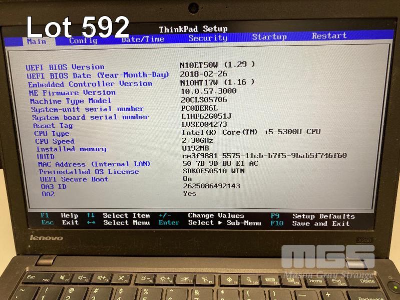 LAPTOP, LENOVO THINKPAD X250 (20CLS05706), CORE i5 5300U (5TH GEN) @ 2.3GHz, 8GB DDR3 RAM, 500GB SATA HDD, 12.5" WIDESCREEN (1366x768), INTEL HD VIDEO, Wi-Fi, BLUETOOTH, WINDOWS 10 PRO INSTALLED & POWER SUPPLY S/N:PC0BER6L