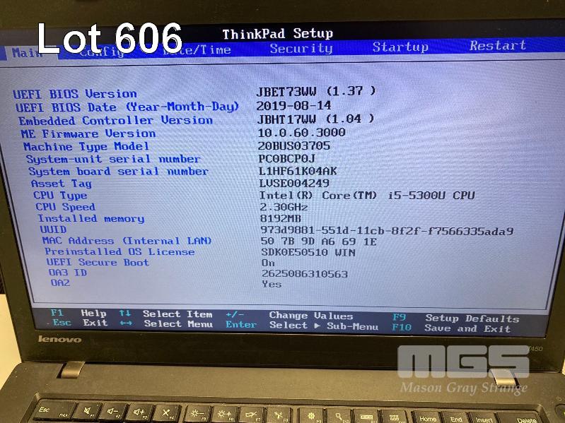 LAPTOP, LENOVO THINKPAD T450 (20BUS03705), CORE i5 5300U (5TH GEN) @ 2.3GHz, 8GB DDR3 RAM, 256GB SSD, 14" WIDESCREEN (1366x768), INTEL HD VIDEO, Wi-Fi, BLUETOOTH, WINDOWS 10 PRO INSTALLED & POWER SUPPLY S/N:PC0BCP0J