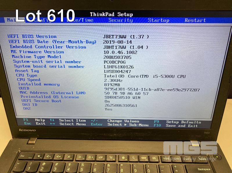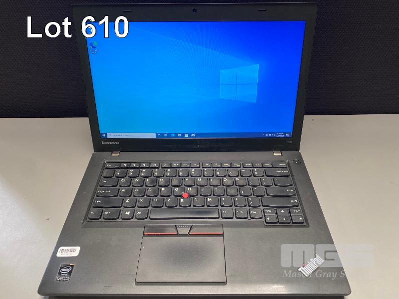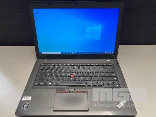 LAPTOP, LENOVO THINKPAD T450 (20BUS03705), CORE i5 5300U (5TH GEN) @ 2.3GHz, 8GB DDR3 RAM, 500GB SATA HDD, 14" WIDESCREEN (1366x768), INTEL HD VIDEO, Wi-Fi, BLUETOOTH, WINDOWS 10 PRO INSTALLED & POWER SUPPLY (NOTE: MARKS ON SCREEN) S/N:PC0BCP0G