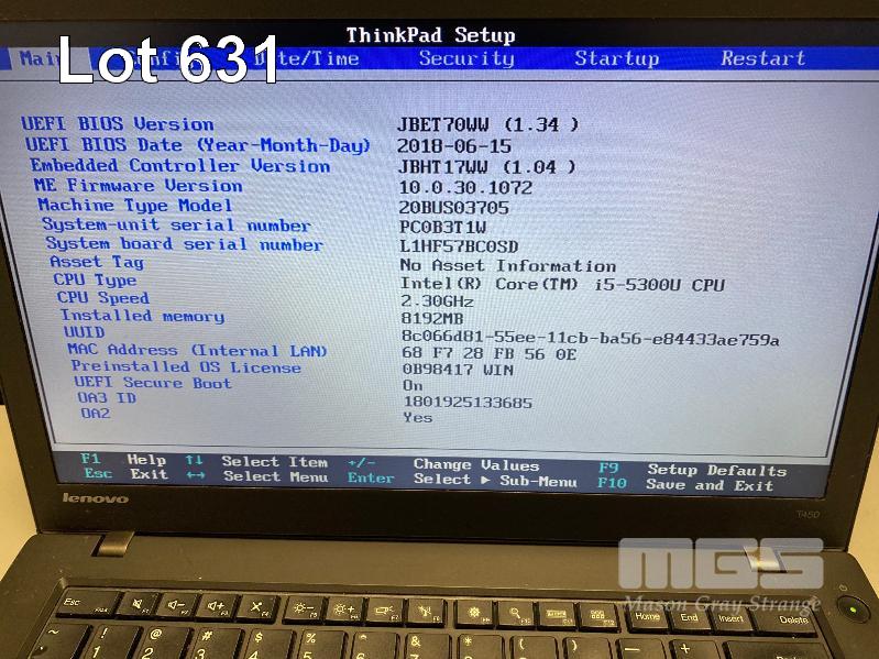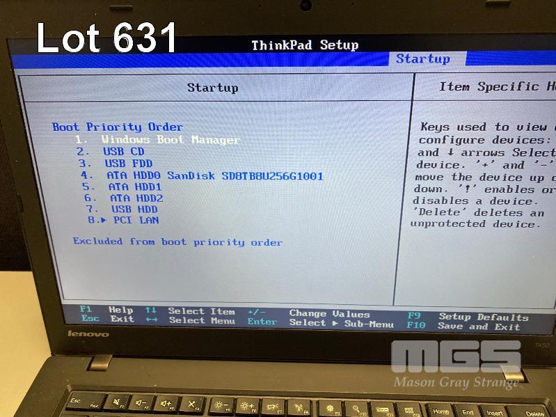 LAPTOP, LENOVO THINKPAD T450 (20BUS03705), CORE i5 5300U (5TH GEN) @ 2.3GHz, 8GB DDR3 RAM, 256GB SSD, 14" WIDESCREEN (1366x768), INTEL HD VIDEO, Wi-Fi, BLUETOOTH, WINDOWS 10 PRO INSTALLED & POWER SUPPLY (NOTE: MARKS ON SCREEN) S/N:PC0B3T1W