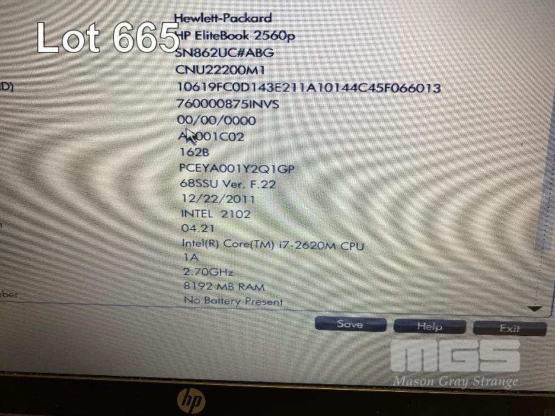LAPTOP, HP ELITEBOOK 2560p (SN862UC), CORE i7 2620M (2ND GEN) @ 2.7GHz, 8GB DDR3 RAM, 320GB SATA HDD, DVD-RW, 12.5" WIDESCREEN (1366x768), INTEL HD VIDEO, Wi-Fi, BLUETOOTH, WINDOWS 7 PRO INSTALLED W/ LICENSE & POWER SUPPLY (NOTE: BATTERY NOT CHARGING, KEYBOARD ISSUES - NEED TO PRESS KEYS HARD) S/N:CNU22200M1