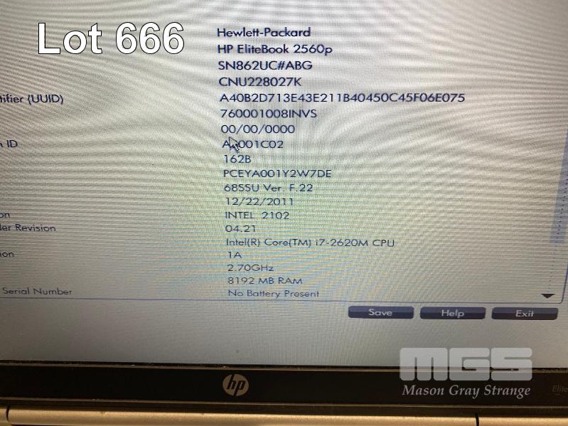 LAPTOP, HP ELITEBOOK 2560p (A6V02EC), CORE i7 2620M (2ND GEN) @ 2.7GHz, 8GB DDR3 RAM, 320GB SATA HDD, DVD-RW, 12.5" WIDESCREEN (1366x768), INTEL HD VIDEO, Wi-Fi, BLUETOOTH, WINDOWS 7 PRO INSTALLED W/ LICENSE & POWER SUPPLY (NOTE: BATTERY NOT CHARGING, DENTS ON CASING, KEYBOARD ISSUES - NEED TO PRESS KEYS HARD) S/N:CNU228027K