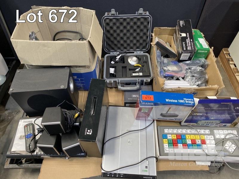1 x PALLET LOT DVD HOME THEATRE SYSTEM, BIG KEYBOARD, INCOMPLETE WACOM TABLET, KVM SWITCHES, ETC