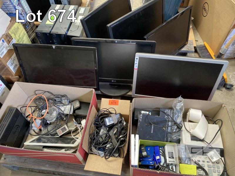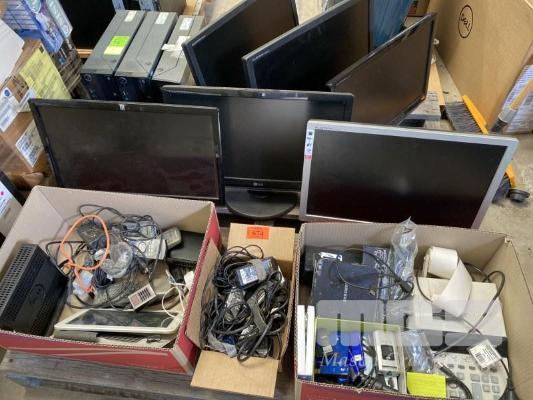 1 x PALLET LOT ASST MONITORS, 3 x DESKTOP PCS, LENOVO ROUND PIN LAPTOP POWER SUPPLIES, TABLET PC, FAULTY DELL LAPTOP, TELSTRA USB MODEMS ETC