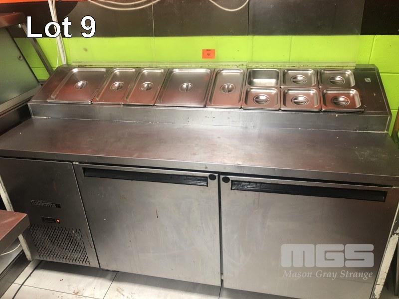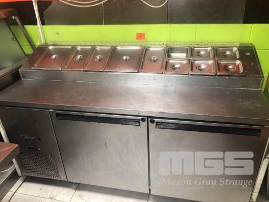 PREP FRIDGE, WILLIAMS 2 DOOR, STAINLESS STEEL SELF CONTAINED UNIT 1800 x 770mm 11 x STAINLESS TREEY TRAYS & LIDS