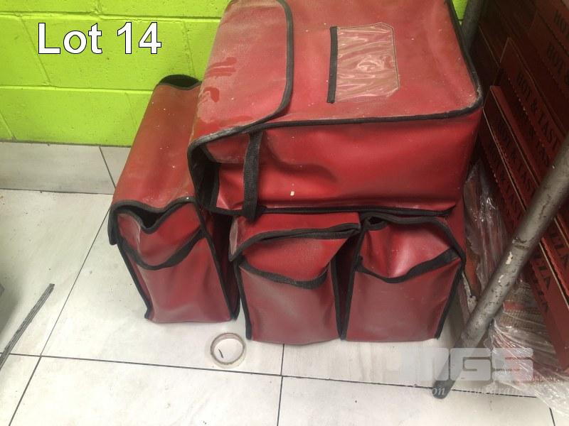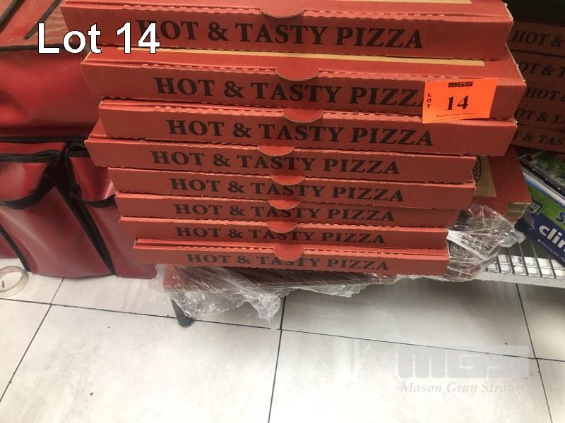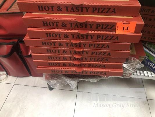 ASSORTED PIZZA BOXES, PIZZA TRAYS & 4 x CARRY BAGS