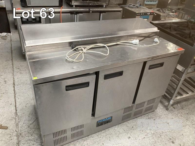 PREP FRIDGE, POLAR G605-A 3 DOOR, 140cm, STAINLESS STEEL CASED SELF CONTAINED UNIT, 240V