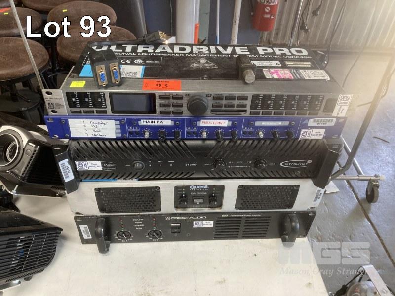 AUDIO EQUIP INCL: ULTRA DRIVE PRO DCX2496, SYNERGY SY2400, QUEST QA3004 & CREST AUDIO 6001