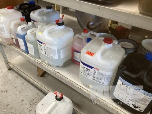 13 x PART DRUMS, ASSORTED CLEANING LIQUIDS