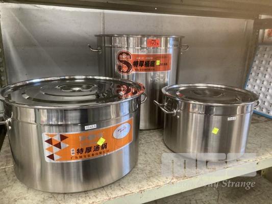3 x STAINLESS STEEL STOCK POTS, 35 & 45cm