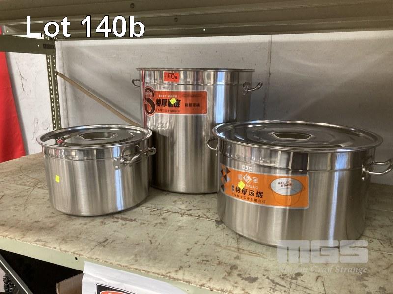 3 x STAINLESS STEEL STOCK POTS, 35 & 45cm