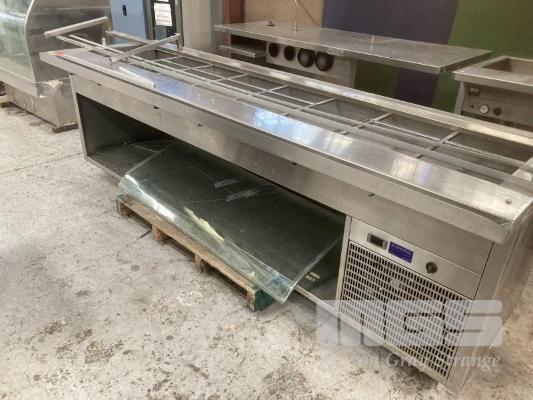 COMBINATION HOT/COLD FOOD SERVERY COUNTER 500 x 85cm, 3 SECTION STAINLESS STEEL CASED, 240V
