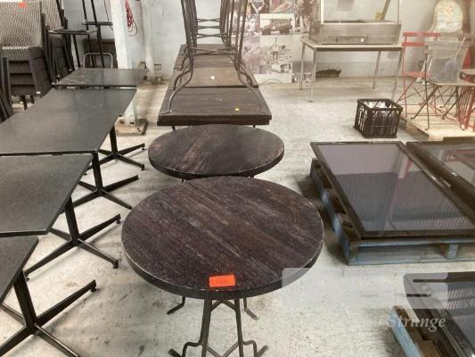 10 x CAFE TABLES, 8 @ 60 x 60cm & 2 x 60cm DIAMETER, TIMBER TOP