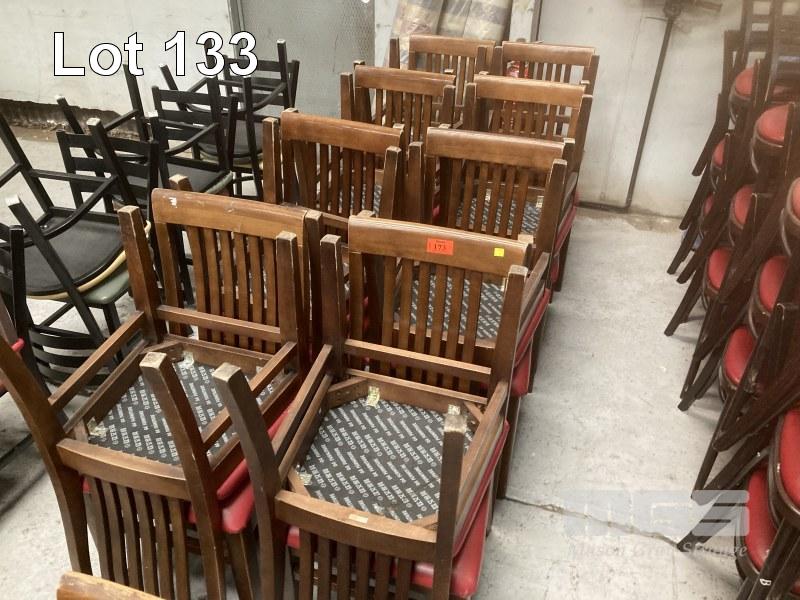 16 x DINING/CAFE CHAIRS, TIMBER FRAME, RED VINYL PADDED SEAT
