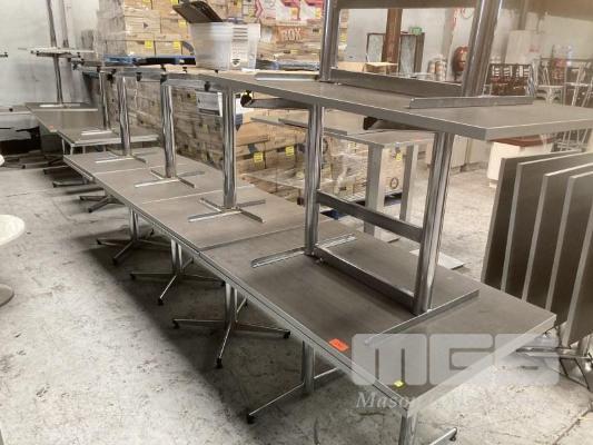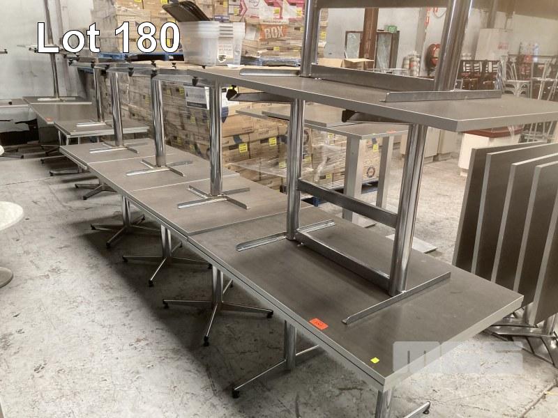 9 x CAFE TABLES, 6 @ 80 x 80cm & 3 @ 120 x 80cm, GREY OAK LAMINATE