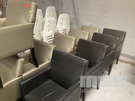 10 x ARM CHAIRS, BLACK & SILVER VINYL