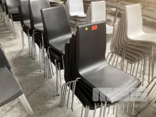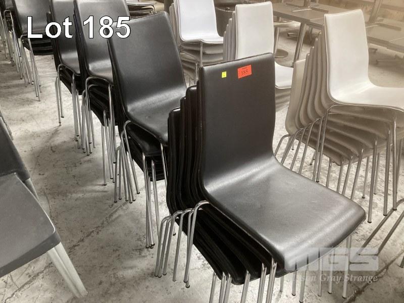 21 x DINING CHAIRS,ONE PIECE CURVED SEAT, BLACK VINYL CHROME FRAME (SOME WORN)