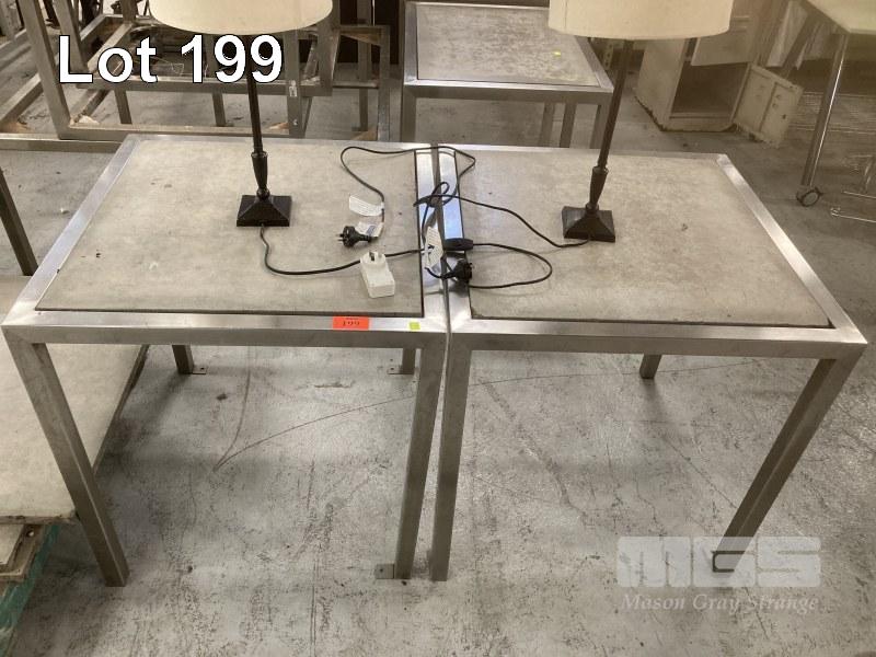 10 x ALFRESCO TABLES, COMPOSITE STONE INLAY, STAINLESS STEEL FRAME, ASSORTED SIZES