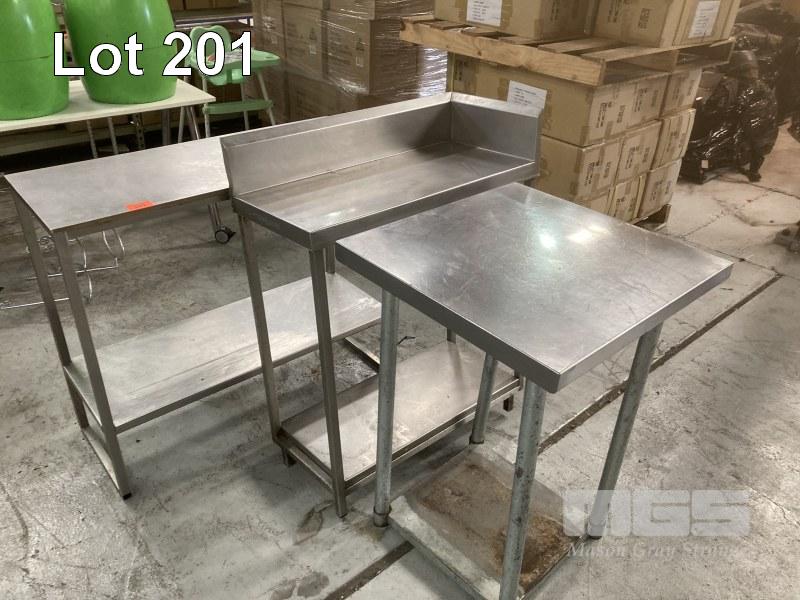 STAINLESS STEEL CORNER BENCH 80 x 40cm & 2 TIER OVERSHELF, 100 x 40cm, & INFILL BENCH