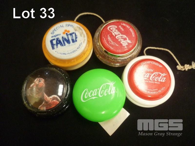 5 x COLLECTABLE VINTAGE YO-YOS INC FANTA & COCA-COLA