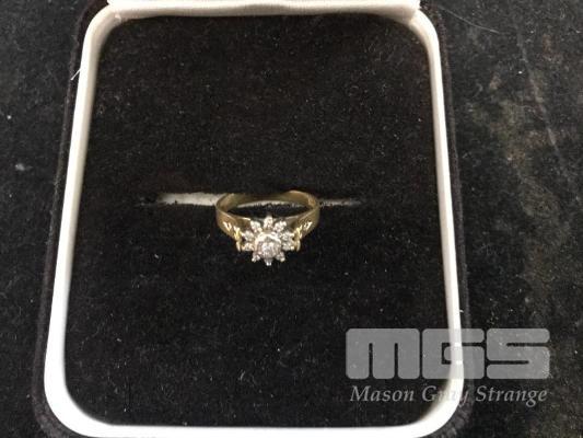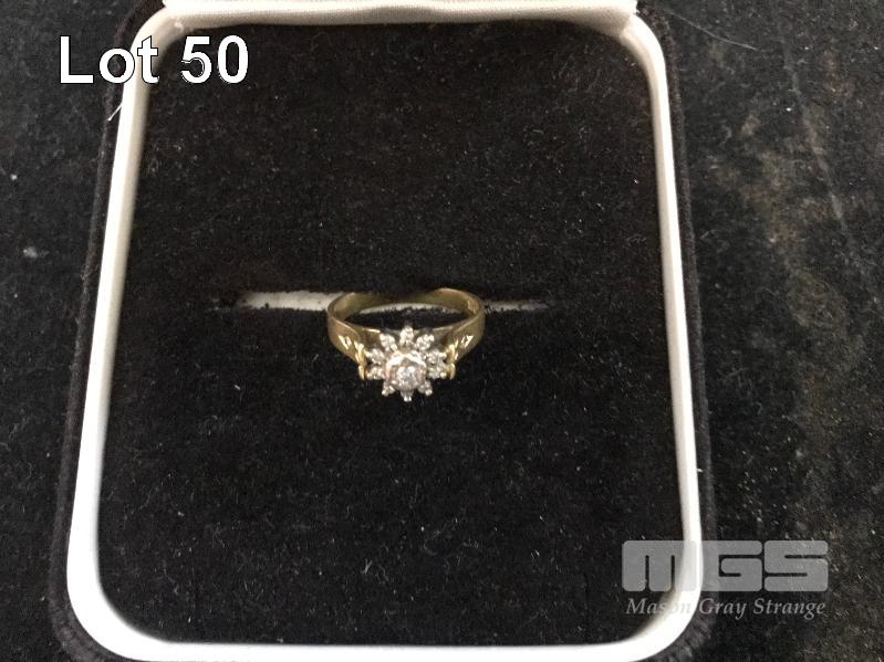 GOLD & DIAMOND RING, 18 CT, CENTRAL DIAMOND & DIAMOND CHIP SETTING, 3.8 GRAMS