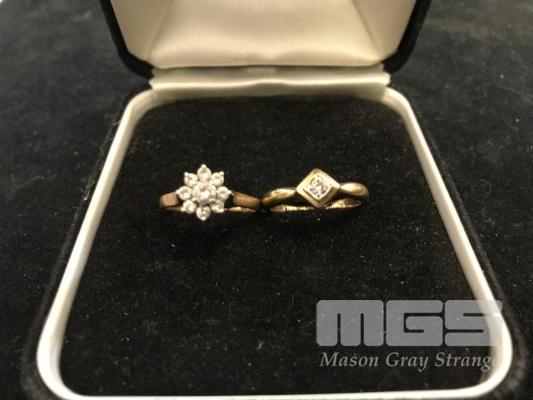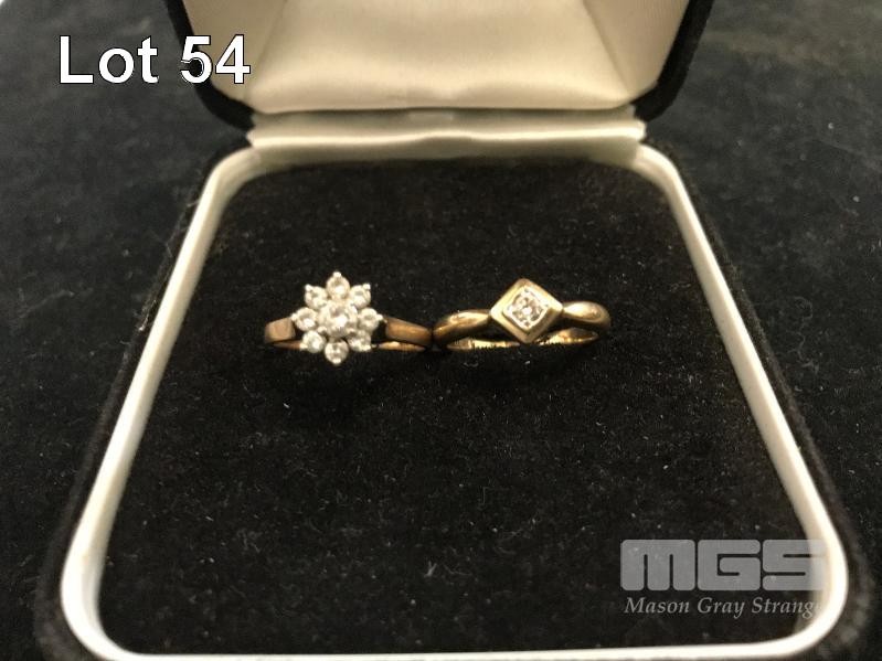 2 X GOLD RINGS 1 X WITH SINGLE DIAMOND SETTING, 1 X WITH MULTIPLE CZ SETTING, 9 CT, 5 GRAMS