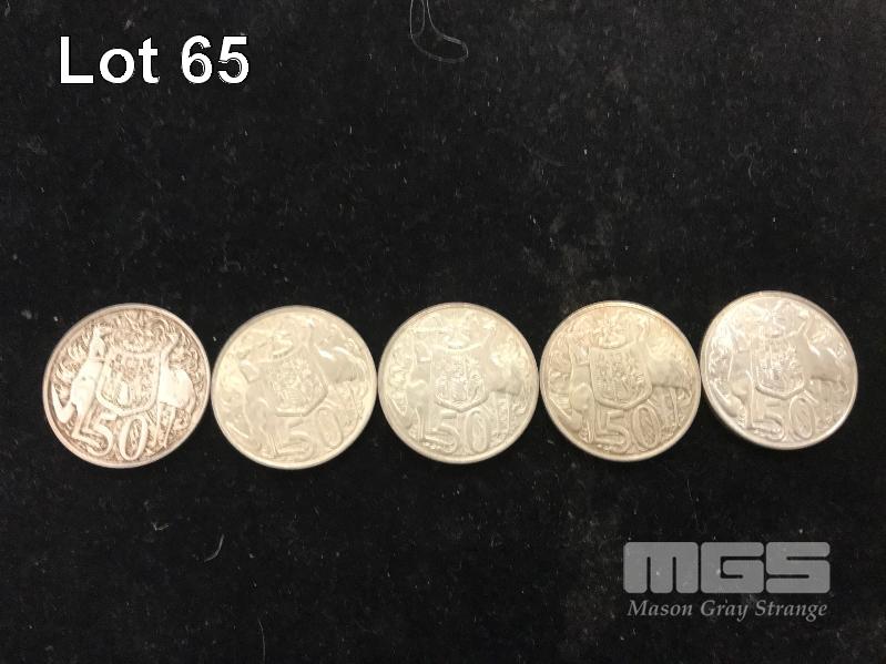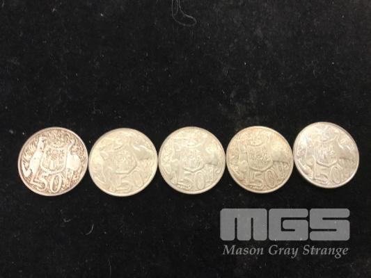 5 X AUSTRALIAN 1966 ROUND 50 CENT COINS
