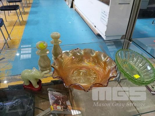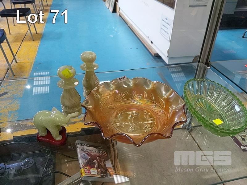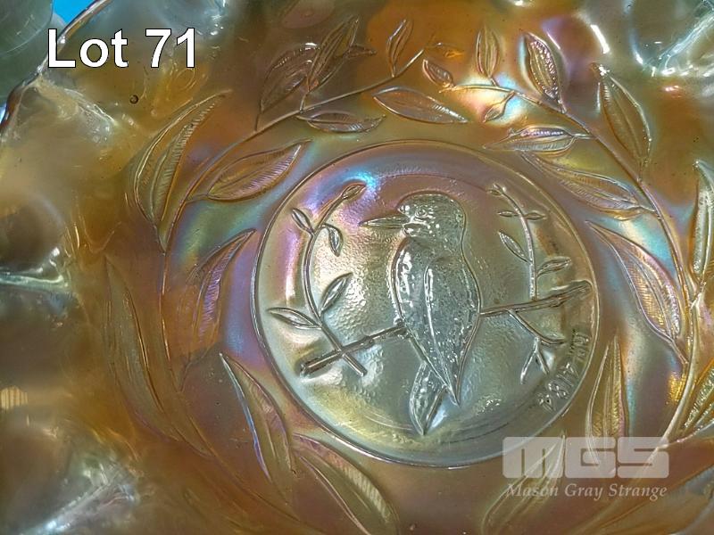 KOOKABURRA CARNIVAL GLASS NAPPY BOWL (RD4184). URANIUM GLASS BOWL