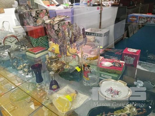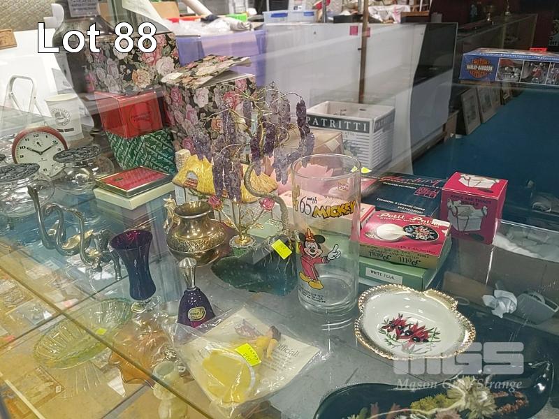 COLLECTION OF CURIOS AND COLLECTABLES, MID CENTURY INCLUDES JADE TREE, FIGURINES, GLASSWEAR, JUNGHANS WIND-UP ALARM CLOCK, AUSTRALIANA, DISNEY, WOODEN URN AND OLD/NEW IN ORIGINAL BOX COLLECTIBLE ITEMS