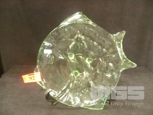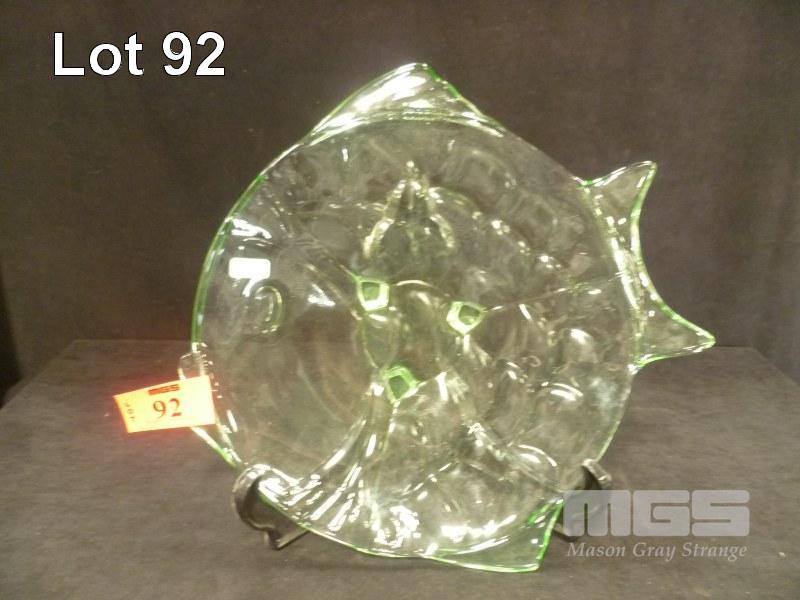 GREEN DEPRESSION GLASS FISH, 28cm ROUND