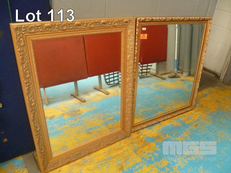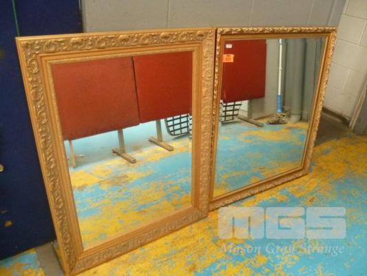 2 x RECTANGULAR WALL MIRRORS, GOLD GILT FRAMED, BEVEL EDGES