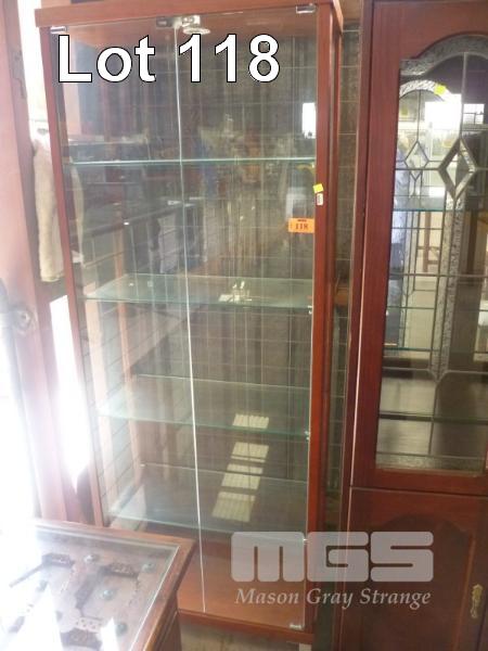TIMBER FRAME, GLASS DISPLAY CABINET, GLAZED ALL SIDES, 4 x GLASS SHELVES, INTERNAL LIGHTING, 188.5cm (H)