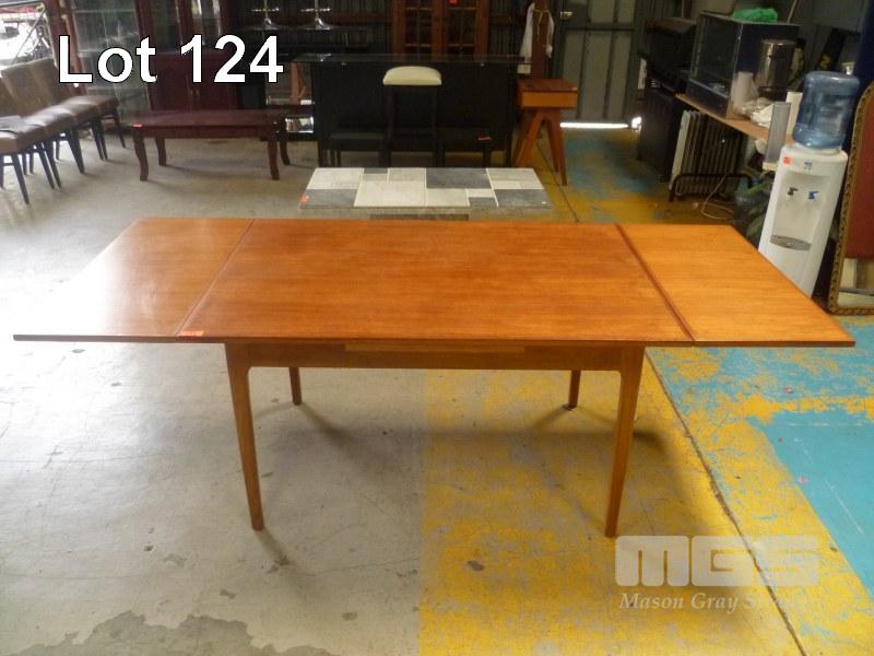 TEAK MID CENTURY DINING TABLE WITH EXTENTION LEAVES TO ENDS