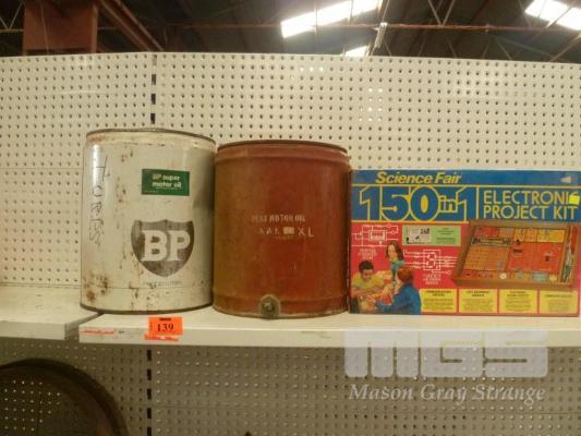 2 x OIL TINS AND VINTAGE "SCIENCE FAIR 150 IN 1" ELECTRONIC PROJECT KIT