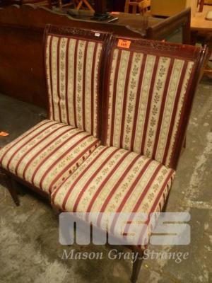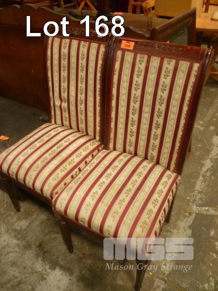 PAIR HIGH BACK DINING CHAIRS, BURGUNDY/BEIGE FABRIC