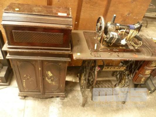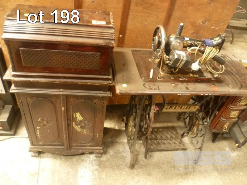 VINTAGE SINGER SEWING MACHINE IN SEWING CABINET WITH 2 DOOR CABINET