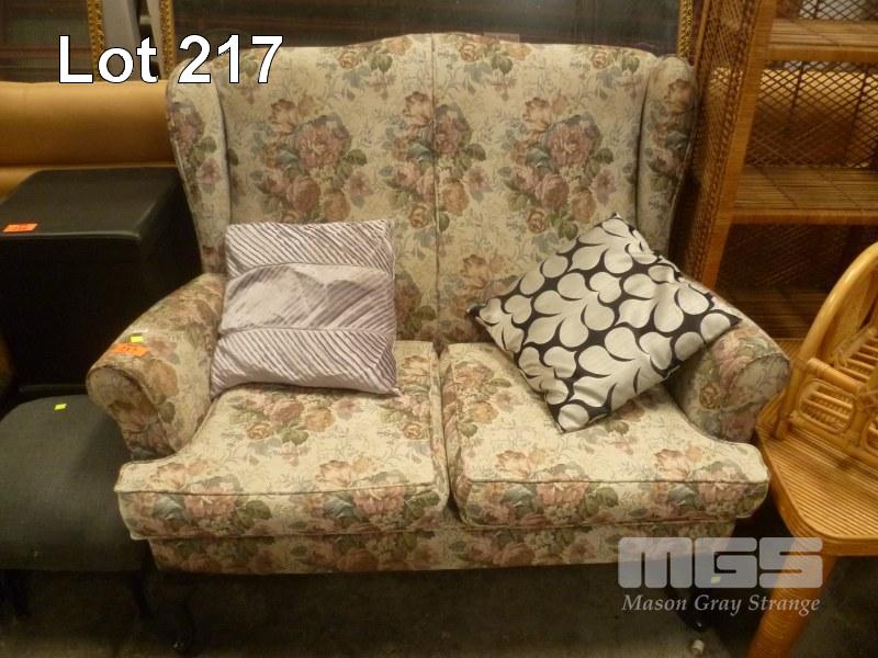 FLORAL FABRIC 2 SEATER LOUNGE, WING BACK