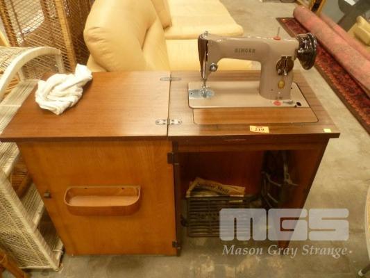 VINTAGE SINGER SEWING MACHINE MODEL 201K IN CABINET